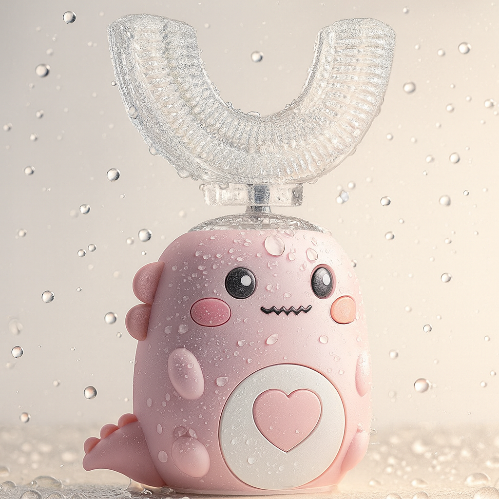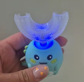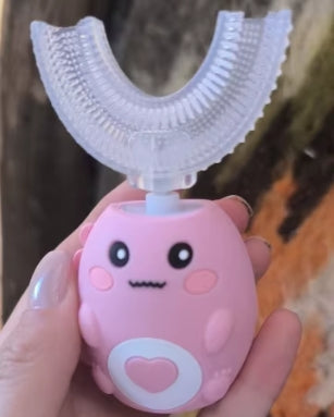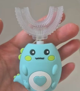Yes, it’s safe for kids (with supervision) once their teeth are fully in enough to fit the mouthpiece properly — often ~5–6 years old, but depends on the child. The hands-free, fun design helps build brushing habits. Always supervise younger users to ensure correct fit and usage.